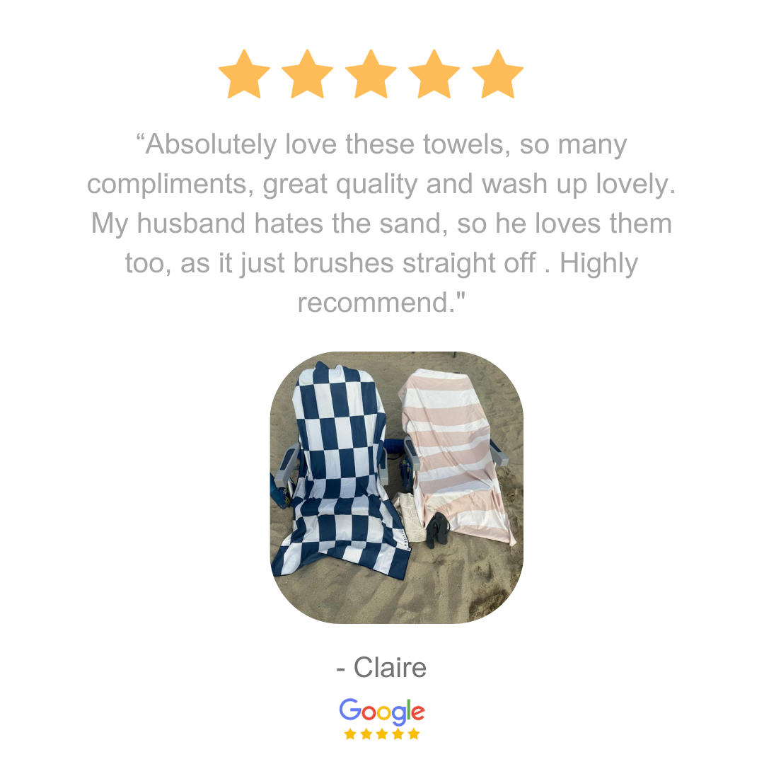 Our beach towels are sand repellent, quick-drying, and sustainably made, delivering both style and comfort for your beach days.