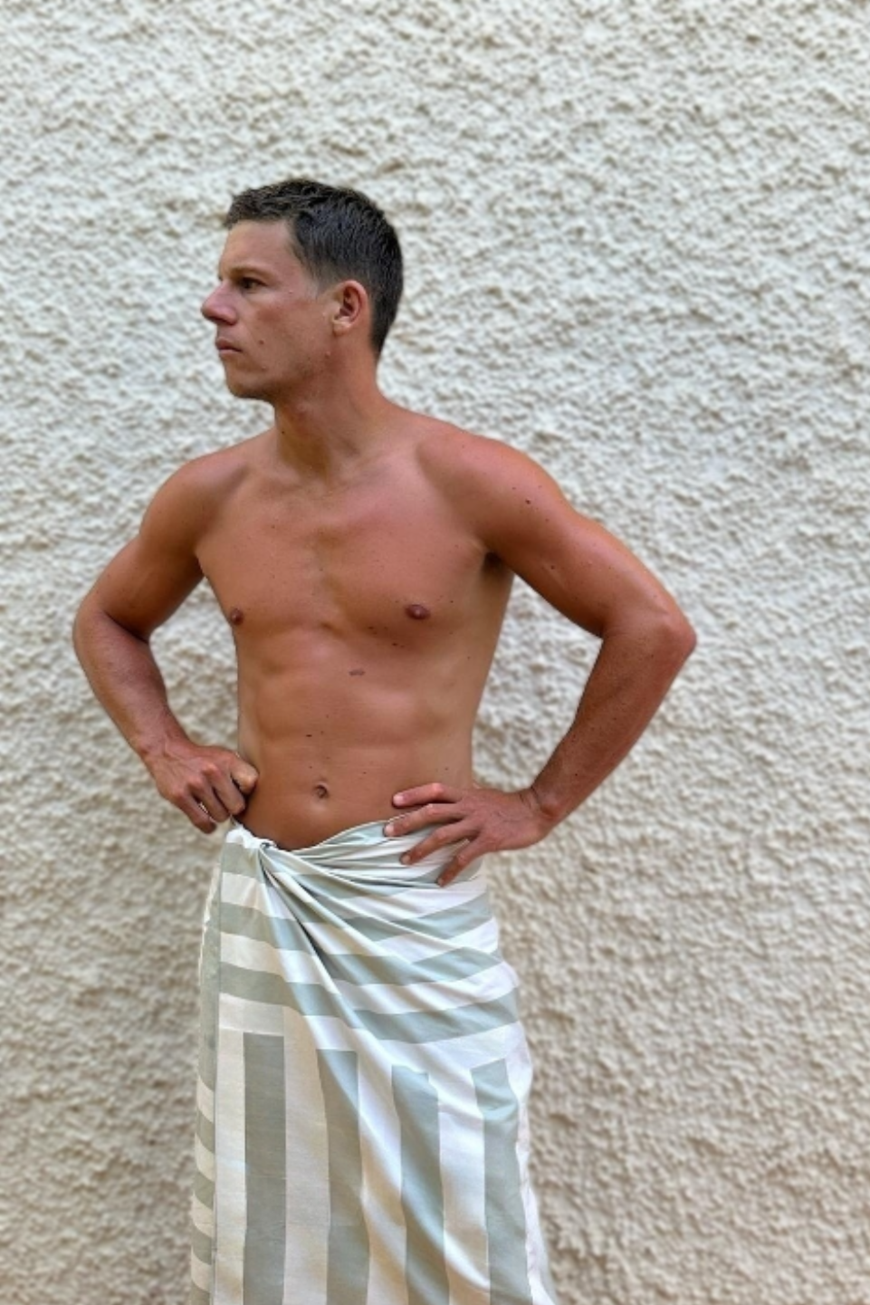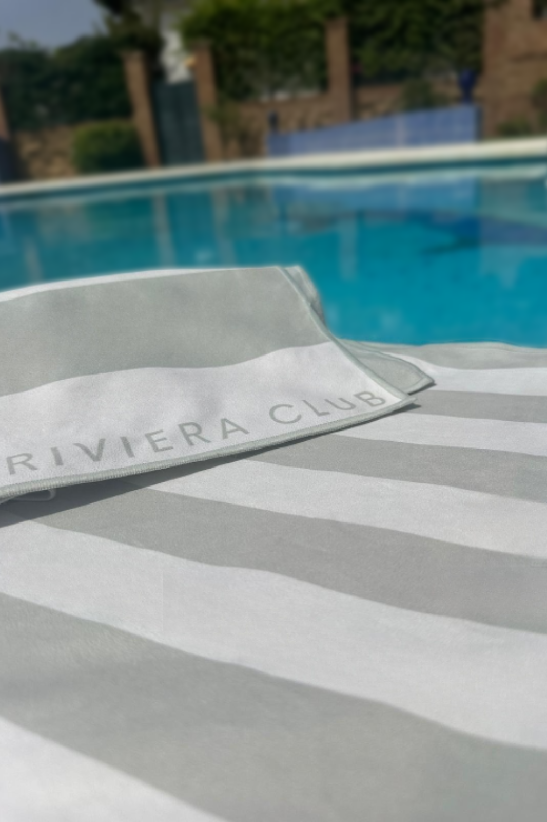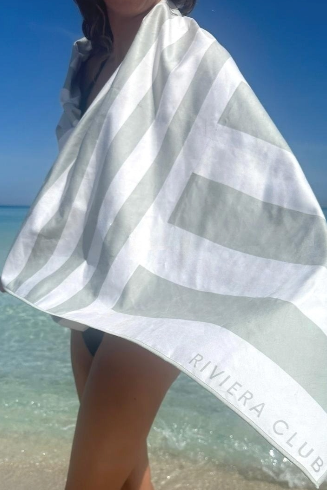 Indulge in luxury with our premium beach towel. Designed to keep sand at bay, this towel boasts an elegant Riviera-inspired pattern. It's lightweight, quick-drying, and crafted with sustainability in mind, making it the perfect companion for your relaxing beach days.