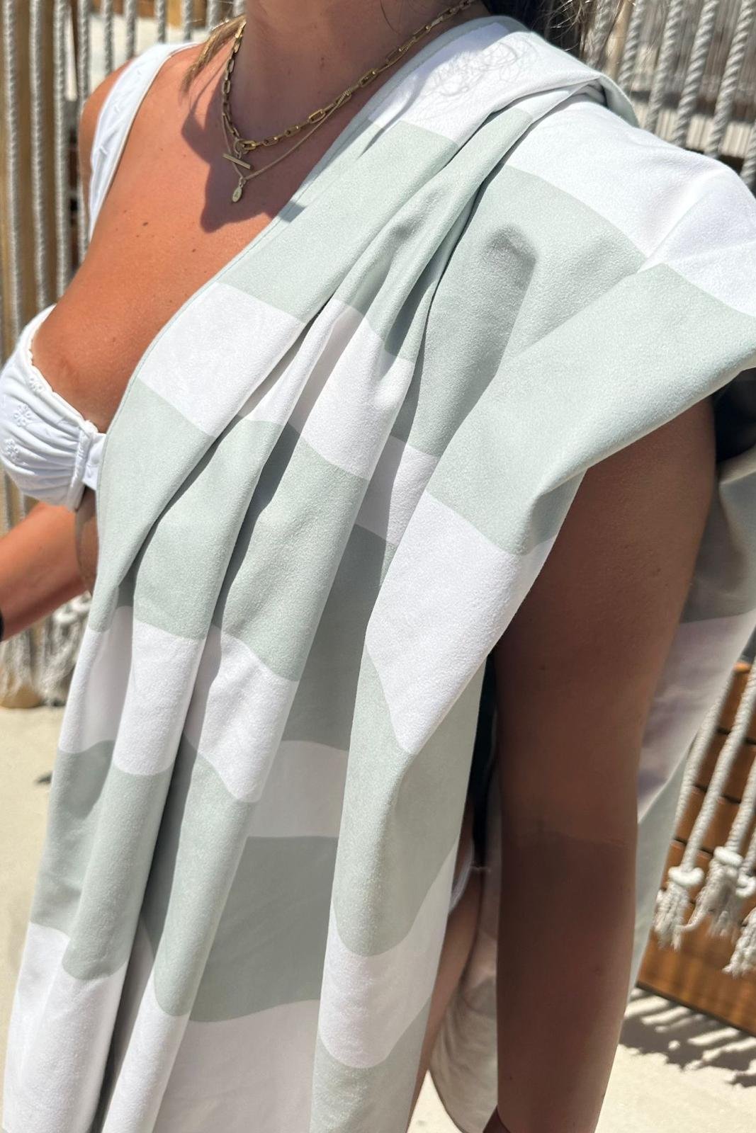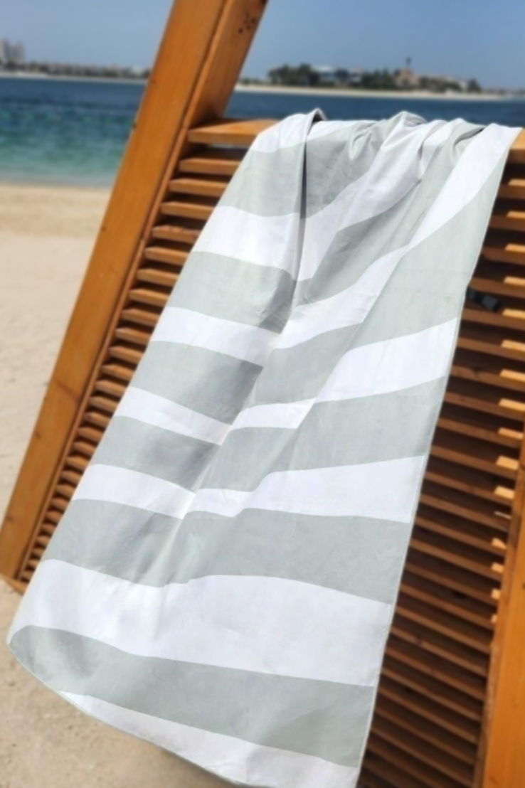 Indulge in luxury with our premium beach towel. Designed to keep sand at bay, this towel boasts an elegant Riviera-inspired pattern. It's lightweight, quick-drying, and crafted with sustainability in mind, making it the perfect companion for your relaxing beach days.